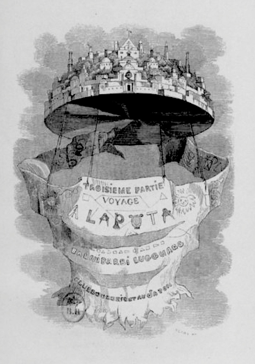 Mais l'artifice de l'antigravité est-t-il réellement nouveau ? On peut relever de nombreux antécédents dans la littérature curieuse et fantastique, par exemple chez Jonathan Swift (1667–1745) et Rétif de la Bretonne (1734–1806). [ J. Swift, Voyages de Gulliver, III Voyage à Laputa (1726). La description du mécanisme de l'Île volante dans le Chap. III (pp. 176–182, édtion de La Pléïade) rappelle furieusement le dispositif de la machine d'Armand Audoin. Chez Rétif de la Bretonne, l'appareil volant de Victorin dans La Découverte australe par un homme volant ou le Dédale français (1781) est plutôt une adaptation à la Léonard de Vinci des ailes d'oiseau. ]