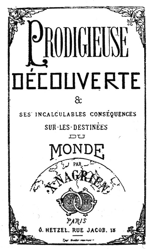 Ce roman rappelle à plusieurs reprises la faconde de Jules Verne, ce qui a sûrement contribué à rendre crédible son attribution à cet auteur. Au début de Prodigieuse Découverte, Nagrien dépose souvenirs et témoignages de son passage dans les airs aux quatre coins de Paris. Dans le premier chapitre de Robur le Conquérant (1886), Robur fera la même chose aux quatre coins du monde.