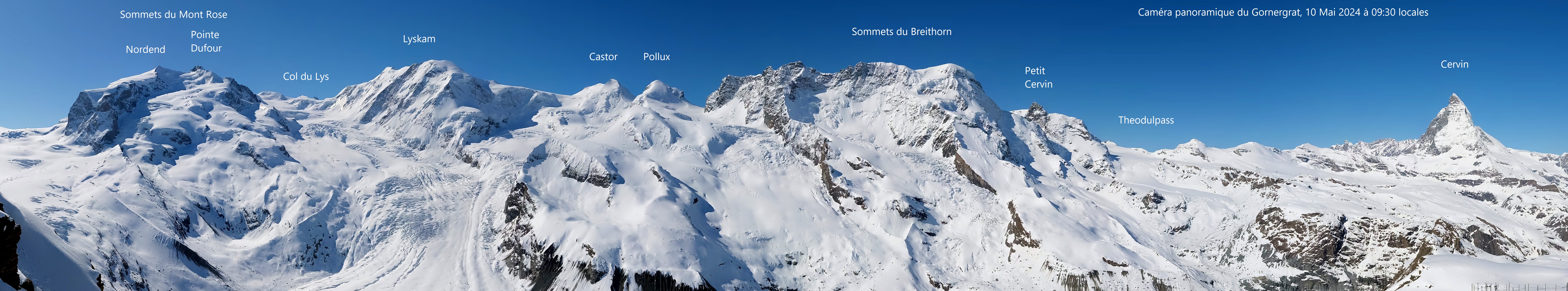 | Quelques panoramas des caméras alpines automatiques (images recadrées et légendées) |
