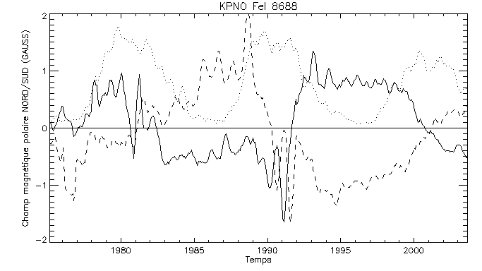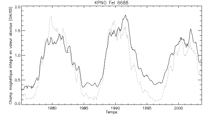 Champ magnétique net intégré sur l'ensemble du disque solaire