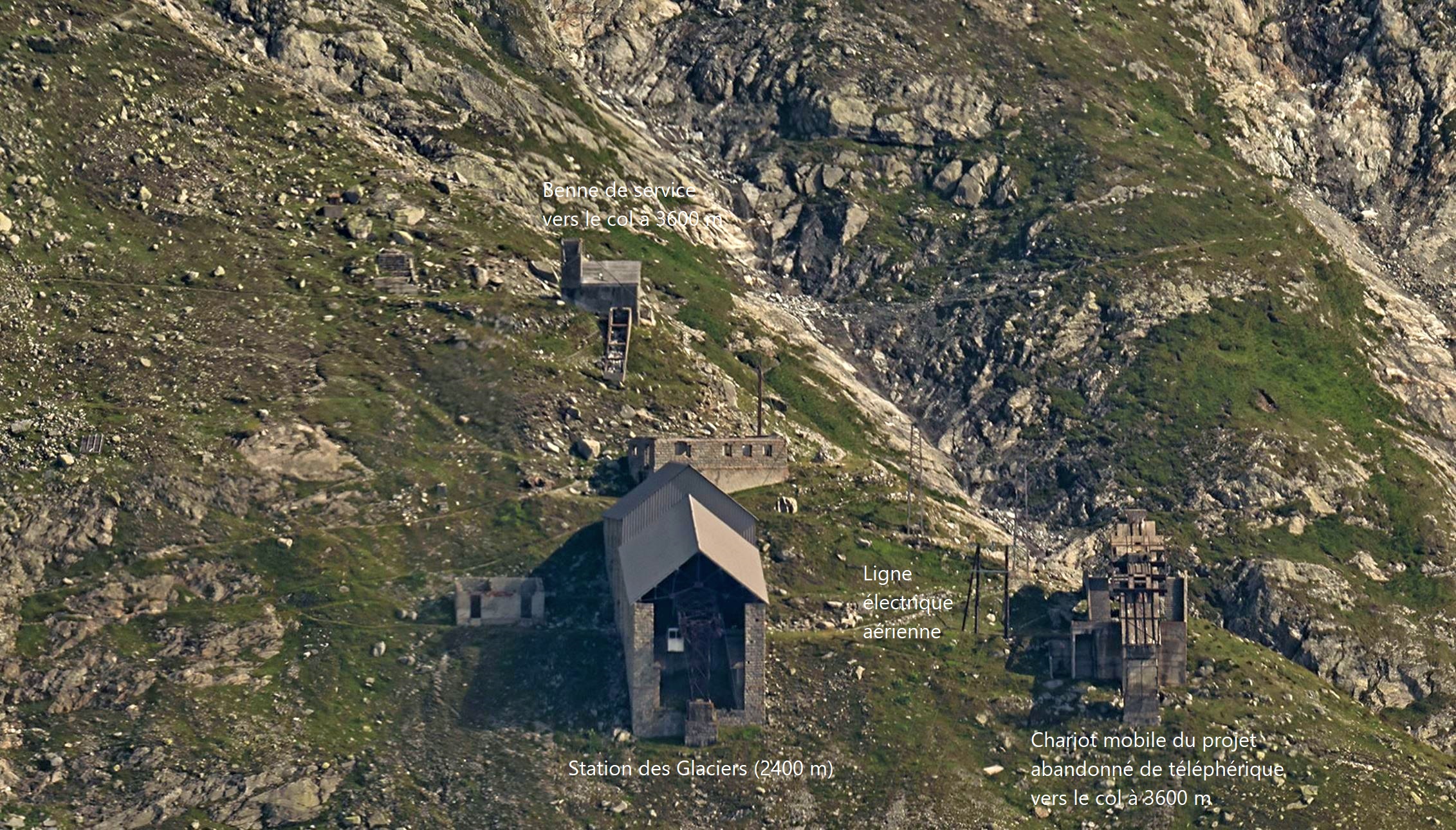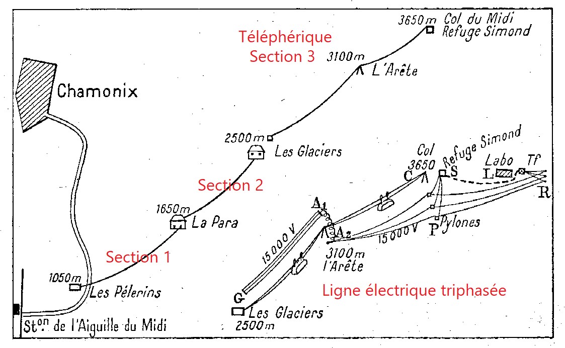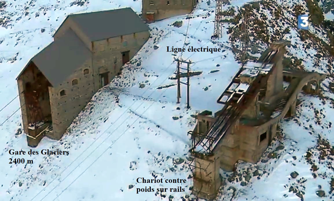 | C1 - Histoire des acces (teleferique des Glaciers, 1924, 1927 et benne de chantier jusqu'au Col du Midi) | ||