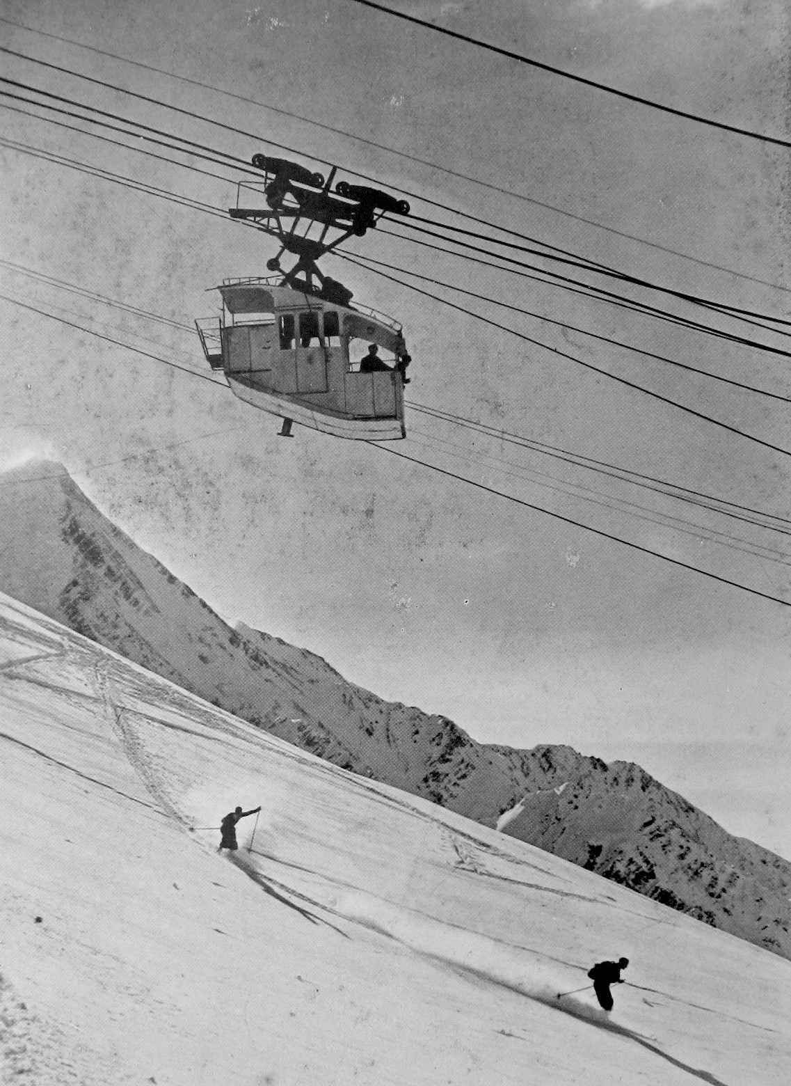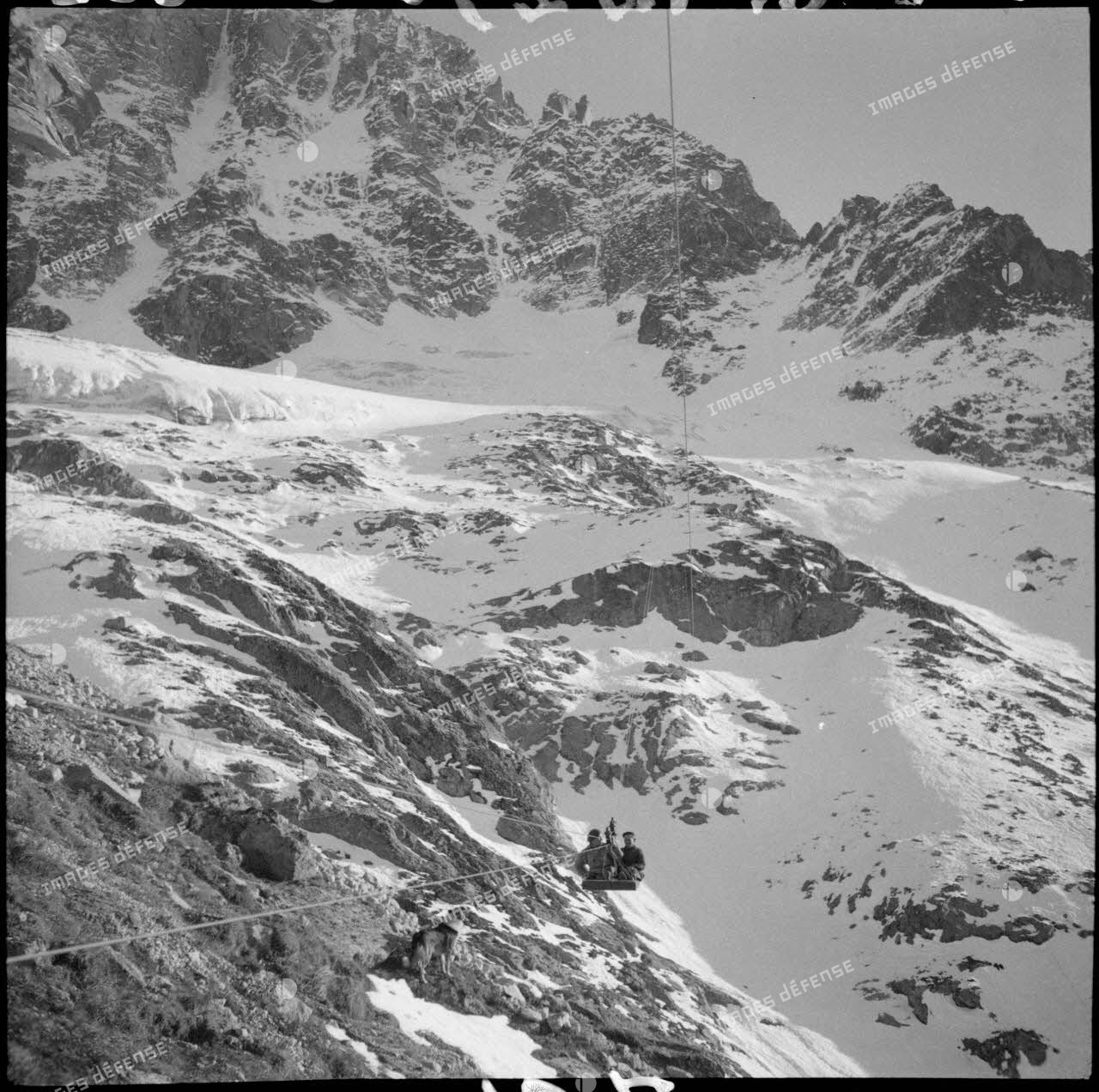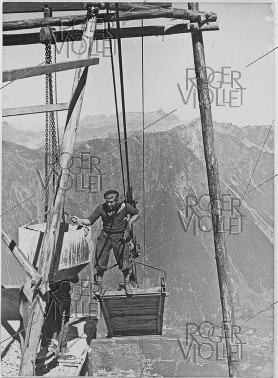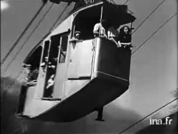 Film INA 1943: telepherique des Glaciers et benne de chantier du Col du Midi