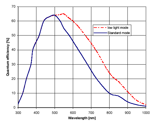 gain 5 e (one ADU = 5 e). The quantum efficiency is
