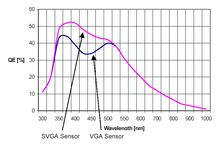 60 % in the blue part of the spectrum. The theoretical