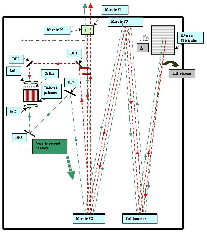 The spectrograph is a 8 m focal length Littrow type spectrograph,