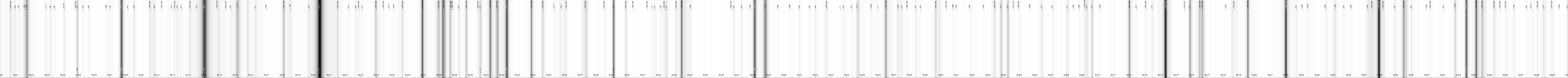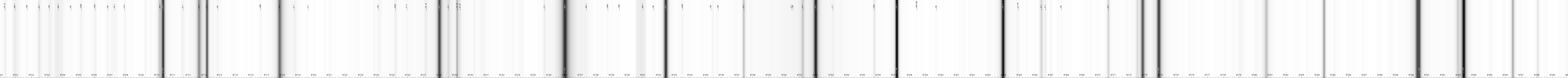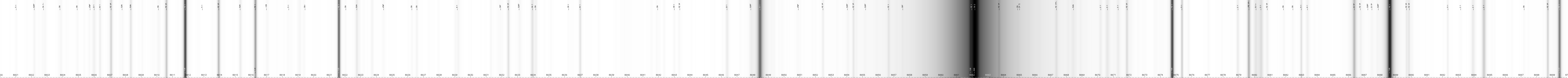 | Spectre solaire 3000-10000 Angströms (Jungfraujoch, auteurs: Delbouille et al), avec identification des raies (table de Moore) et facteurs de Landé |