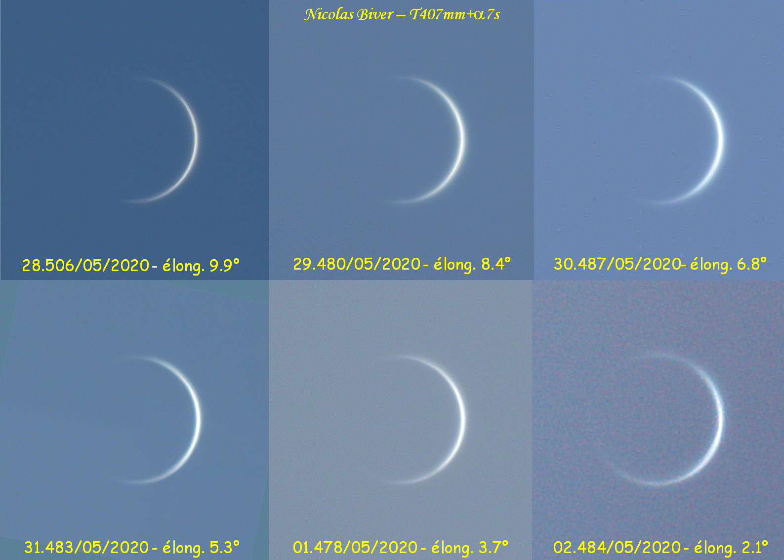 | 28 May 12h07 UT T407mm F/D=34 52 images averaged: Elong.= 9.9° |