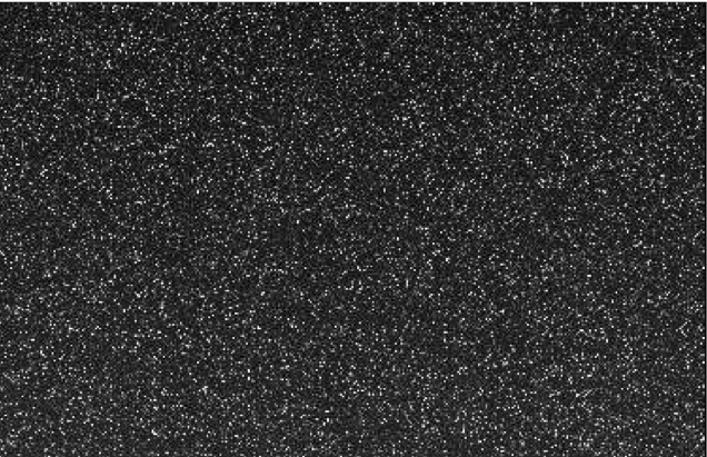 Cette quantité est proportionnelle à l'éclairement lumineux reçu par la matrice, les irrégularités spatiales étant corrigées. On note que les deux courants d'obscurité utilisés sont a priori différents, puisque l'image et la PLU sont acquis avec des temps de pose différents. L'incertitude relative sur le niveau mesuré est la somme quadratique des différents bruits de mesure : [ B(I) / I ]2 = [ Bphot(I)2 + 2Blect2 + 2Btherm2 ] / [ S - D ]2 + [ Bphot(PLU)2 + 2Blect2 + 2Btherm2 ] / [ PLU - D ]2 en supposant qu'on utilise deux courants d'obscurité différents pour l'image et la PLU, et en négligeant le bruit de numérisation. Le second terme est négligeable si les PLU sont mesurées dans de bonnes conditions (avec un rapport signal sur bruit élevé), mais ce n'est pas toujours le cas.