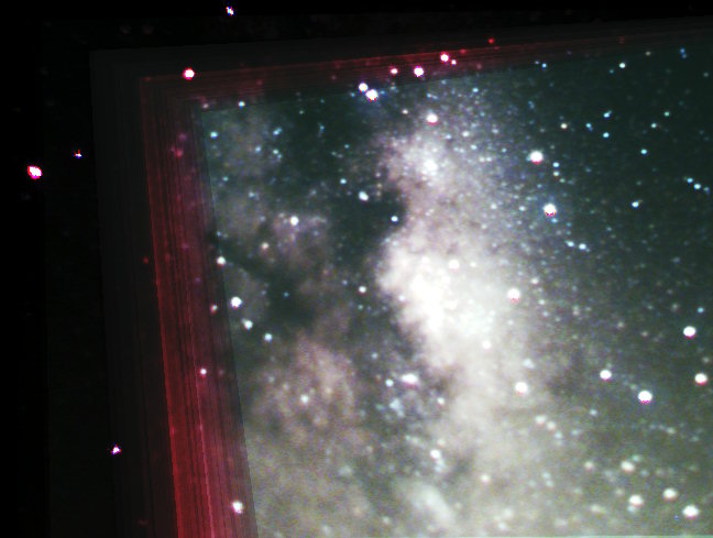 Correction des petits défautsLes images contiennent presque toujours de petits défauts, pixels anormalement sombres ou brillants. Ils peuvent être dus aux défauts de la matrice, aux fluctuations du courant thermique, ou à des rayons cosmiques intégrés pendant la pause. On élimine les défauts ponctuels aléatoires en prenant la médiane de plusieurs images recentrées et normalisées ; cette opération réduit également le bruit de l'image (bruit "poivre et sel"). A noter que si on n'a pas de valeurs aberrantes, la moyenne point par point fournit une correction plus efficace. Si on a peu d'images, on peut également corriger les défauts ponctuels avec une médiane locale à l'intérieur de l'image, ou avec un filtre "out-range" (on remplace dans une petite zone les valeurs aberrantes par la moyenne locale - notamment pour les pixels morts). On perd légèrement en résolution de cette façon. Les