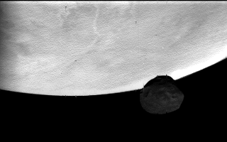 | Image de navigation de la sonde Phobos-2, durant l'approche (caméra VSK) | ||