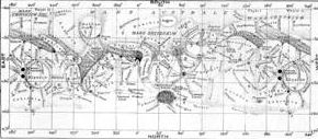 | Giovanni Schiaparelli (1877) : premières cartes précises (réseau de contrôle télémétrique). Origine de la nomenclature actuelle. Premières observations de canaux en grand nombre (mentionnés dès 1869 par Secchi) ; ces structures n'apparaissent que très fugitivement, dans les moments où l'atmosphère terrestre se fige momentanément.