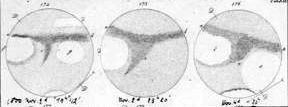 Schiaparelli publie une autre carte après l'opposition de 1879, couverte de canaux dont certains se dédoublent ("gémination"). Il y a dès lors une forme de conditionnement, tout le monde s'attendant à voir des canaux - ne pas en voir trahirait le mauvais observateur. La grande lunette de Lick (91 cm), premier observatoire en altitude (1300 m) est mise en service en 1888, à la fin de l'opposition. Malgré cela, des canaux sont reportés. Les différents observateurs dressent des cartes différentes, et différentes de celles de Schiaparelli. William Pickering (1890) : premières photos correctes. |